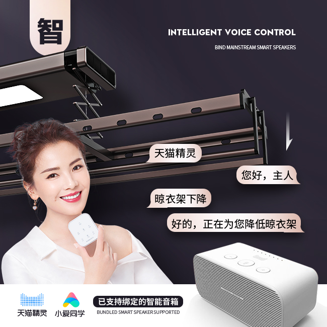 其實,擁有智能控制系統則可以稱之為智能電動晾衣架,包括但不限于語音控制、無線控制、遙控控制、App控制等。