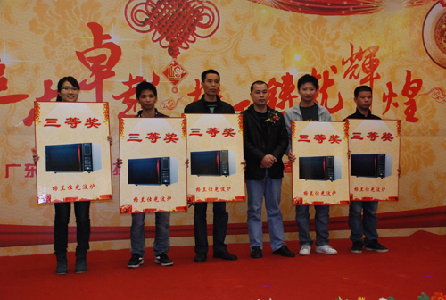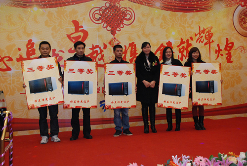 為了讓大家盡興而歸,年會上自然也少不了抽獎這個環節,隨著三等獎、二等獎、一等獎、特等獎的抽取,不斷掀起年會的高潮。公司領導與員工熱情互動,讓歌聲、掌聲、歡呼聲一直在會場上蕩漾。